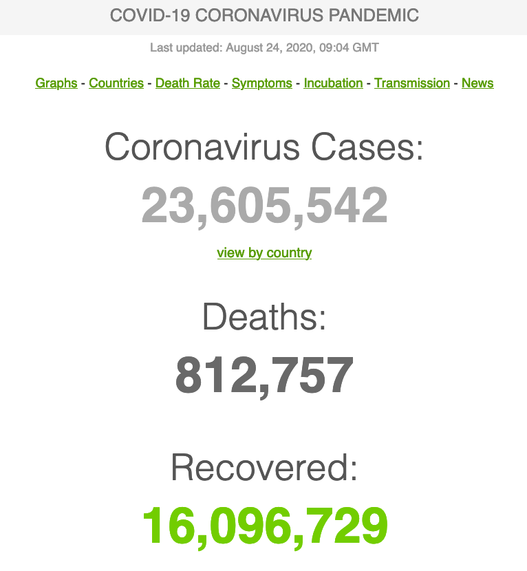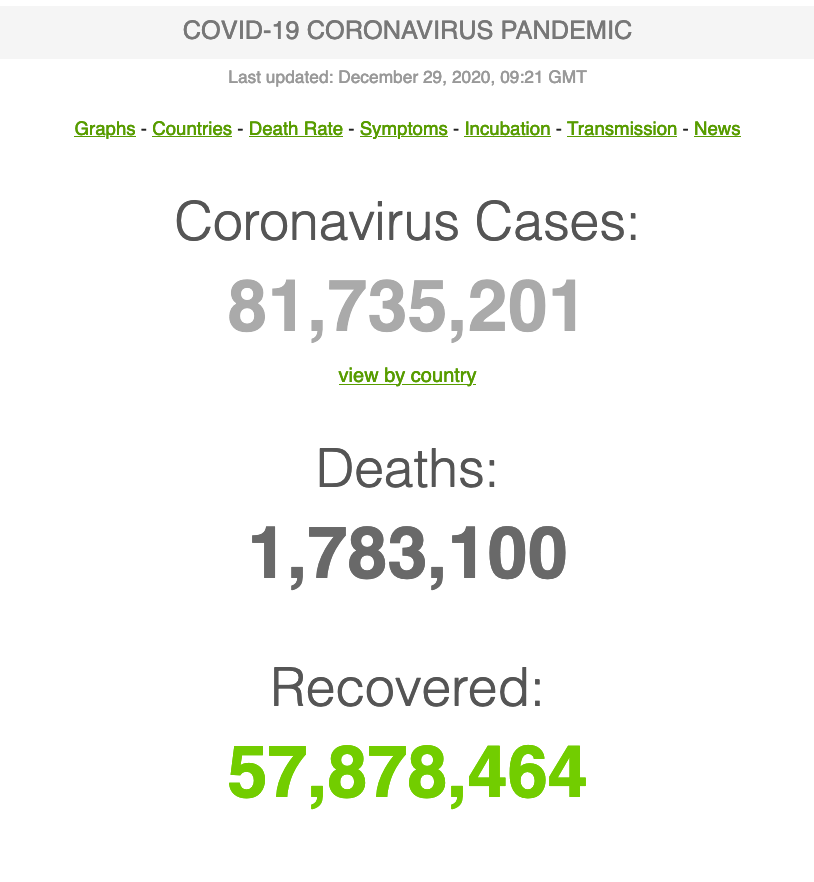 Statistieke oor die huidige uitbreking: https://www.worldometers.info/coronavirus/