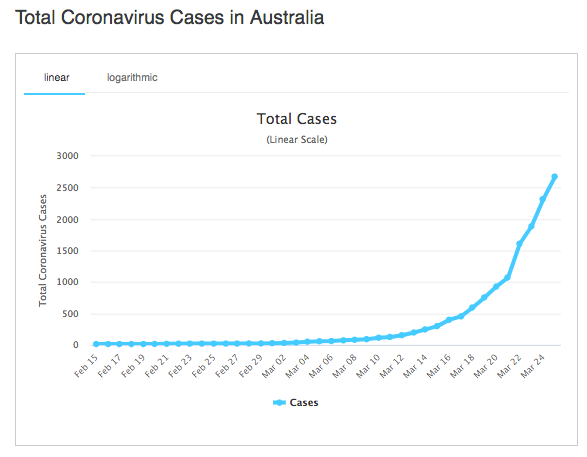 Só lyk Australië se grafieke: Meer as 2800 gevalle met 13 sterftes.