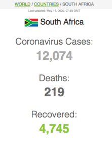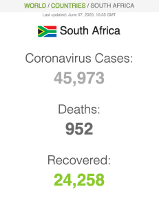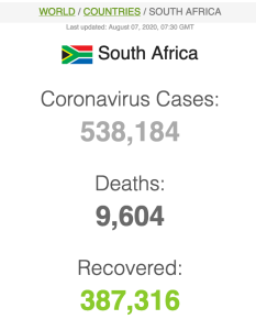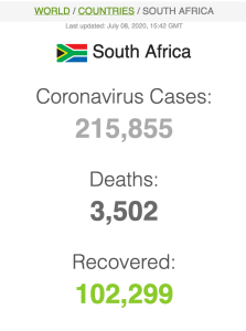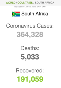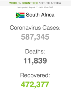 Let ook op dat Suid-Afrika meer mense het wat van Covid herstel het (191 059) as wat tans aktief siek is (173269).