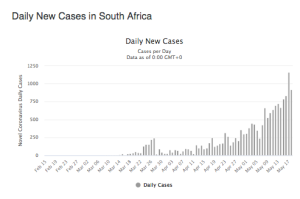 27 Maart 2020: Meer as 1000 (1170) gevalle van COVID-19 is reeds in Suid-Afrika aangemeld, asook die eerste twee sterftes. Die twee sterftes is in Wes-Kaap.