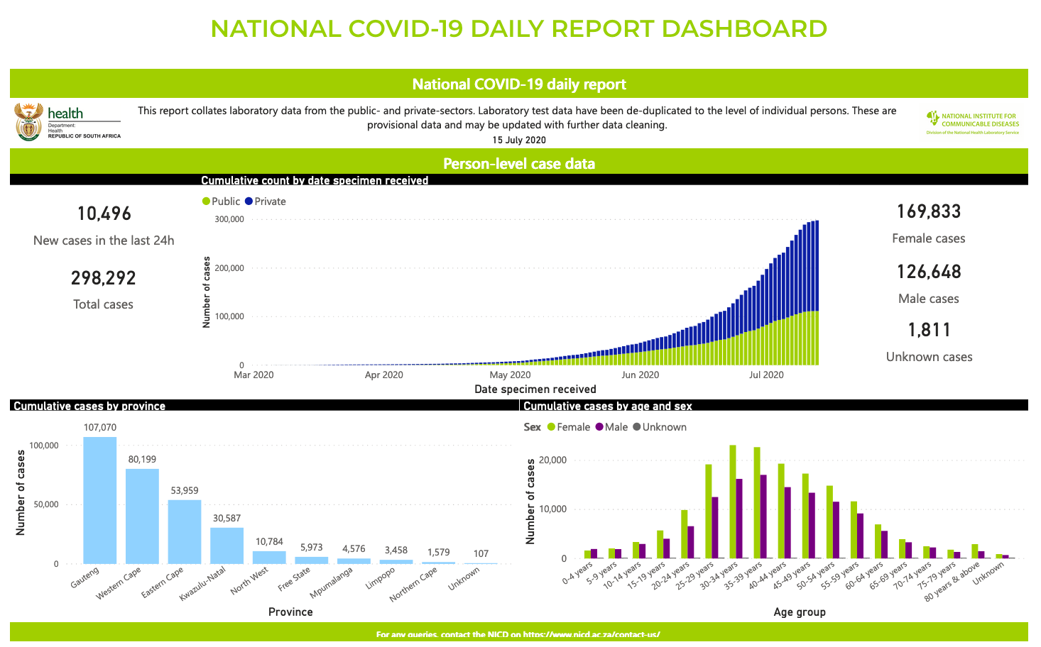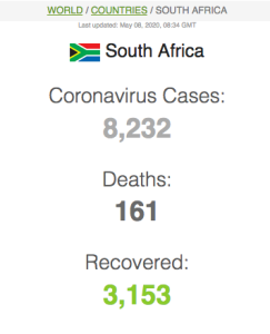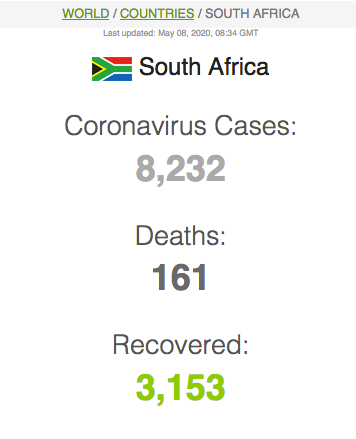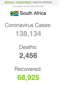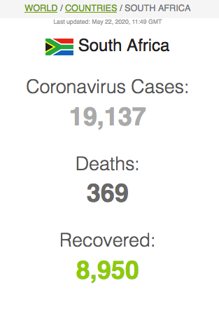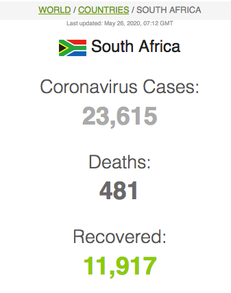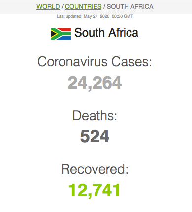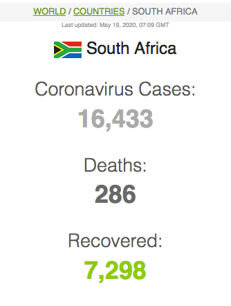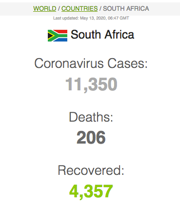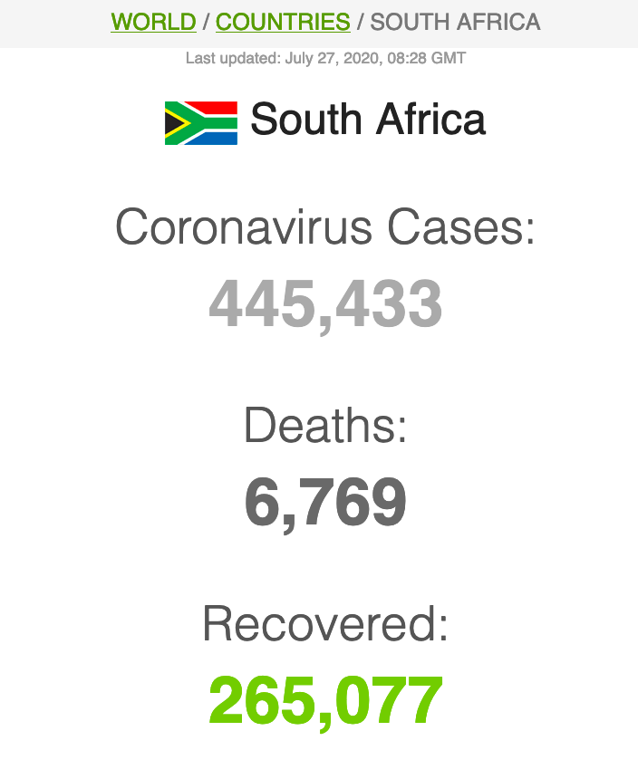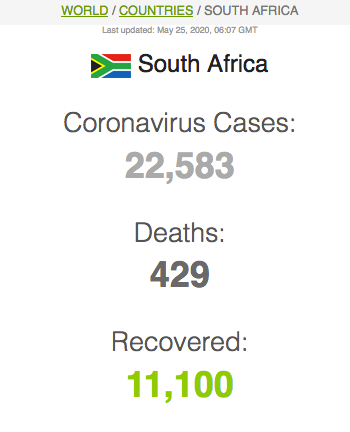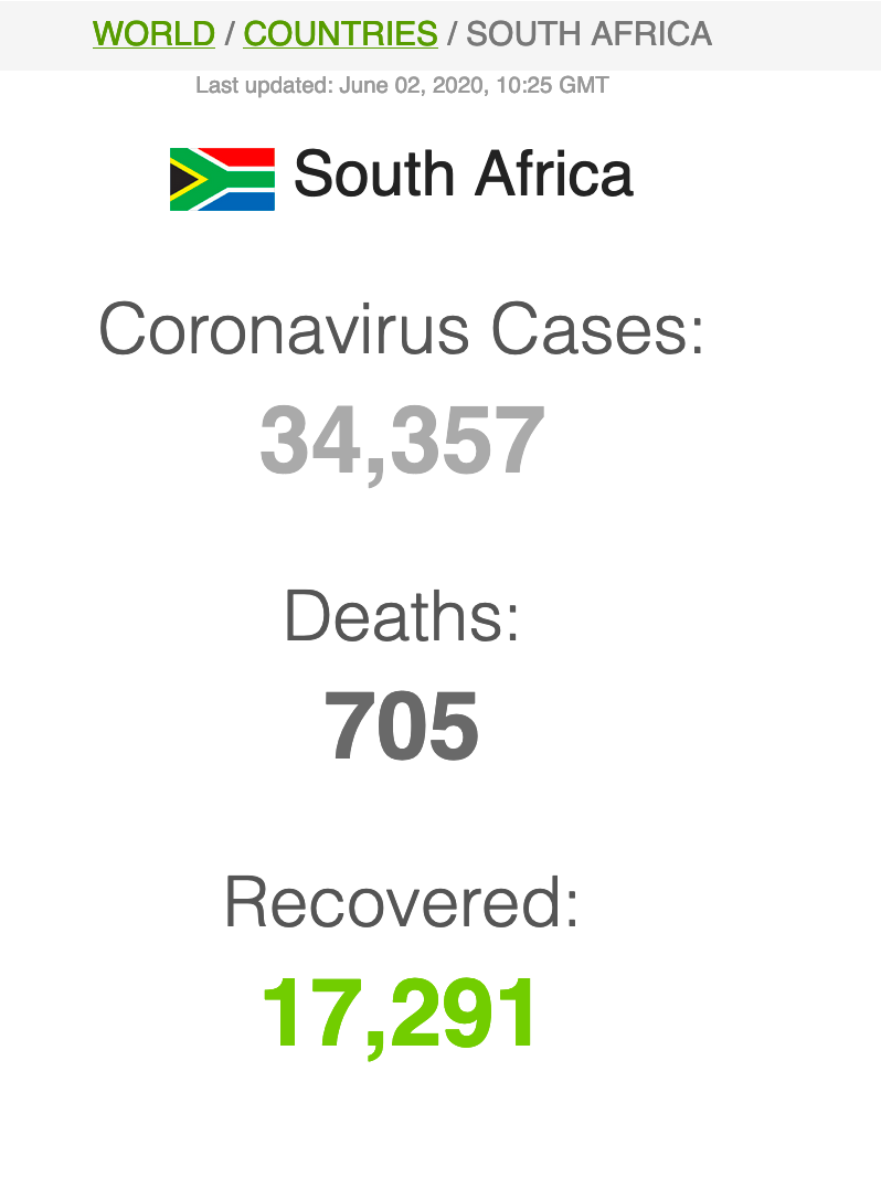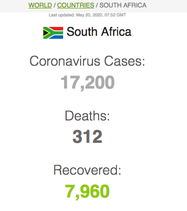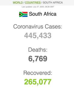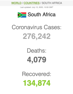 Let ook op dat Suid-Afrika meer mense het wat van Covid herstel het (191 059) as wat tans aktief siek is (173269).