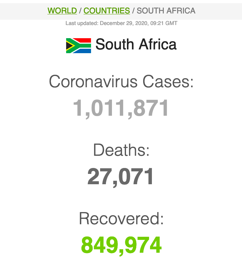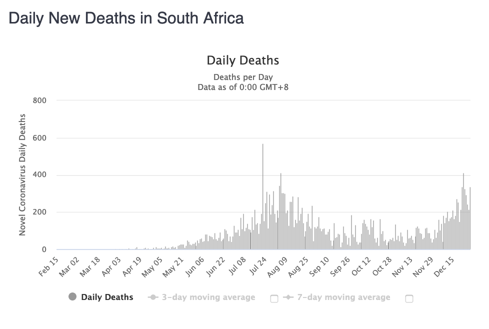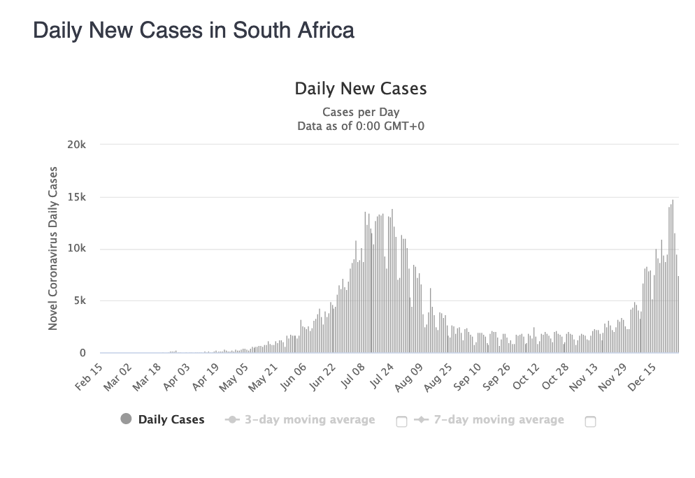- In Oos-Kaap het die 2e piek mid-Oktober begin en einde November gepiek. Dokters bevestig dat die sale in hospitale in PE en Uitenhage leër is, en dat die sterftes afgeneem het. In Oos-Londen word die piek hierdie week verwag.
