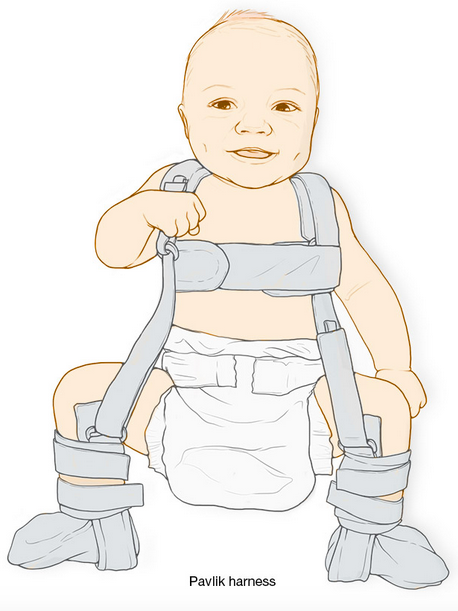 5. Babas wat gebore word met ‘n heupgewrig wat maklik uit die potjie kan glip, word in ‘n ‘padda’-spalkie geplaas sodat die heuppotjie reg kan ontwikkel om die kop van die bobeen in die potjie te anker.