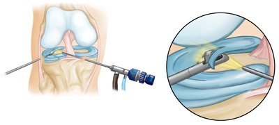 Nadat ‘n diagnose gemaak is, is dit moontlik om chirurgie te doen met die gebruik van die artroskoop. In meeste gevalle word twee klein insnydings op die knie gemaak waardeur die artroskoop geplaas word, tesame met enige ander instrumente wat benodig word. Dit kan naalde, hakkies of ander chirurgiese instrumente insluit.
