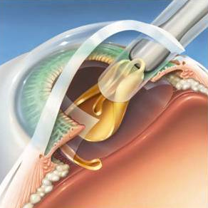Die nuwe lens word in die plek van die wolkerige lens wat verwyder is, ingeplant