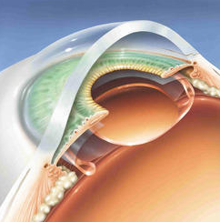 Die lens wat ingeplant word, is baie klein, en is toegevou soos ‘n valskerm sodra dit in die kapsel geplaas word en die veertjies anker die lens binne-in die lenskapsel.